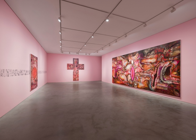 Kukje Gallery is pleased to present Jang Pa’s solo exhibition Gore Deco, on view in the gallery’s K1 and K2 spaces from December 9, 2025, through February 15, 2026. Jang Pa’s paintings challenge fixed notions of "painting" and "beauty," visually exploring grotesque aspects of femininity and sensibilities of historically marginalized groups. Her work powerfully contests the male-dominated visual vocabularies of art and expands feminist subjectivity within the realm of painting, reconfiguring the female body and its sensations as autonomous forms rather than as “objects.” Marking her inaugural exhibition with Kukje Gallery, Jang Pa presents approximately 45 works, including the painting series Gore Deco, which gives the show its title, alongside drawings, etchings, and a silkscreened mural. Jang Pa’s new works continue to recontextualize traditional representations of women, employing humor and subversive critiques to overturn the male gaze and disrupt the persistent sexualization of the female body.