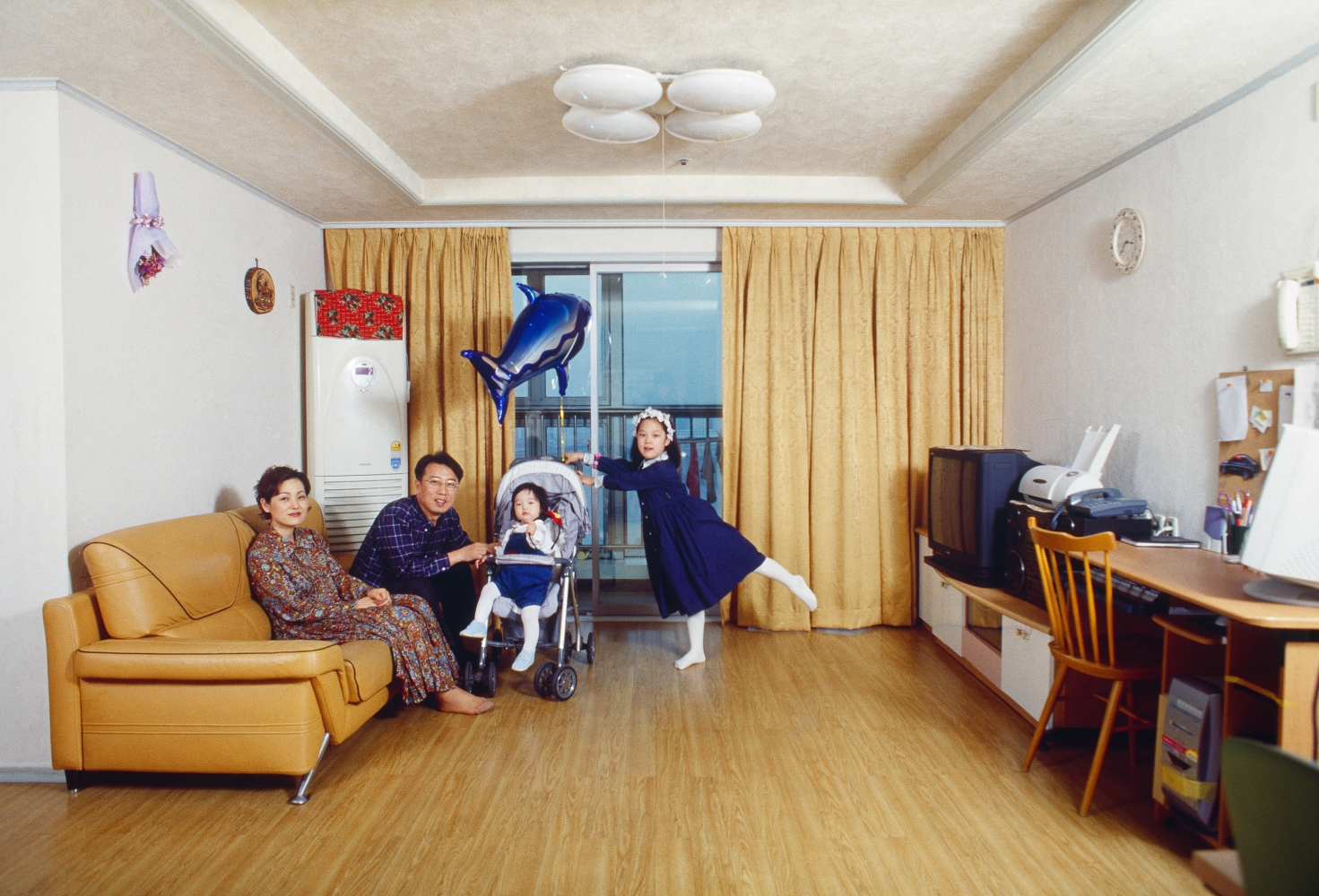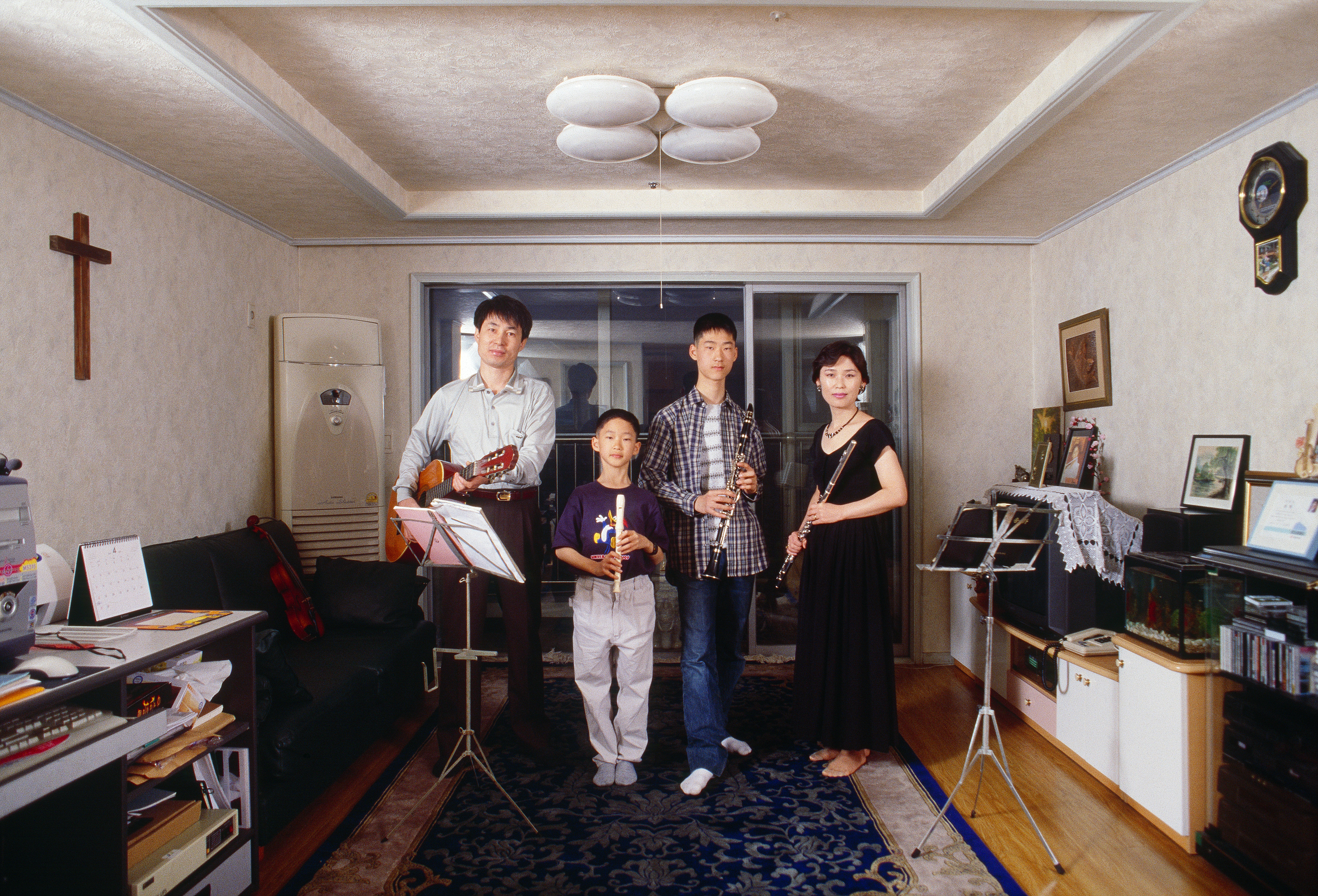 Evergreen Tower, presented in this exhibition, is a series of family portraits photographed inside the living rooms of 32 households within a single apartment complex in Seoul. As the units share nearly identical floor plans, each home reveals a unique arrangement of daily life, highlighting both the shared structures and the distinct identities of urban households. Meanwhile, Bewitched features individuals around the world, capturing their present lives and imagined futures staged side by side. Ordinary families and individuals collaborate with Jung to express themselves as they are, while also envisioning who they dream of becoming, creating a space where reality and desire intersect. Moving beyond traditional portraiture to visualize the imagined worlds co-created with his participants, Jung transforms personal dreams into staged realities. Bringing together depictions of daily life with the inner wishes of families and individuals, Jung Yeondoo: Building Dreams remains on view through January 25, 2026.