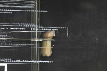 Glass, fog machine, artificial leaves, wood, steel, sand, motor, timer