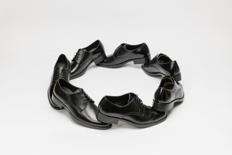 Ahn lived and worked in Germany between the late 1980s to the early 1990s, a pivotal period that saw the artist liberate himself from the use of traditional materials in order to engage the often contradictory values of modernity. Incorporating everyday objects and language into his practice, Ahn began to articulate what became his unique practice balancing critique and poetry. Many of the works on view in The Other Side of Things provide an interpretation of these early “object sculptures,” reintroducing them in new or modified, yet more cohesive compositions. 2/3 Society (1991), originally a set of three leather shoes connected in linear format, now forms a circle made of seven leather shoes attached heel to toe, playing on the circle as a metaphor for the interconnected relationships and interactions in our society. The circle and its symbolic social role are also at work in a reconstruction of Solidarity Makes Freedom (1992), with the new version featuring nine—previously three—coats attached together to form a roughly circular form, the title implying a potent albeit abstract message. The work explores the subject of boundaries between the self and others, us and them, inside and outside, and barriers that prevent intrusion. Another work, A Guilty Brush (1990-91), which consisted of a black shoe brush—has also been modified to depict the word “sin” portrayed in white, gradually fading into the surrounding white bristles.
