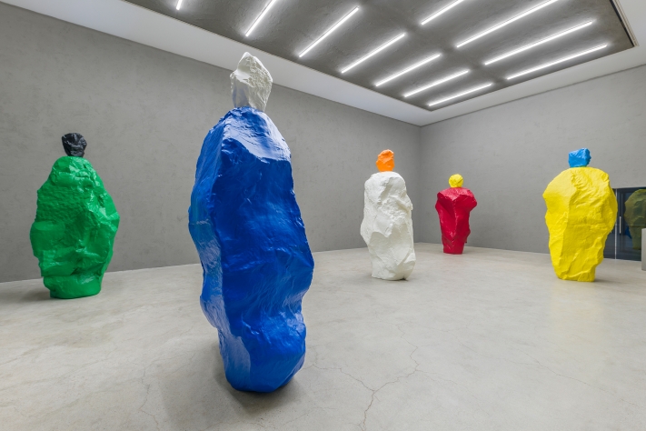 지난 10여 년간 우고 론디노네는 돌이라는 재료가 지닌 힘에 집중해왔다. 2013년 뉴욕 록펠러 센터 광장에서 〈human nature〉라는 이름으로 처음 소개된 기념비적 청석 조각 작업은 2016년 네바다 사막에서 돌탑 형상의 작품 〈seven magic mountains〉로 다시 전시된 바 있다. 〈nuns + monks〉를 위시한 이 야심한 규모의 작업들은 론디노네가 “돌에 내재한 아름다움과 에너지, 구조적 특징, 표면의 질감, 그리고 시간을 모으고 응축하는 능력”에 부여한 신뢰를 대변한다.