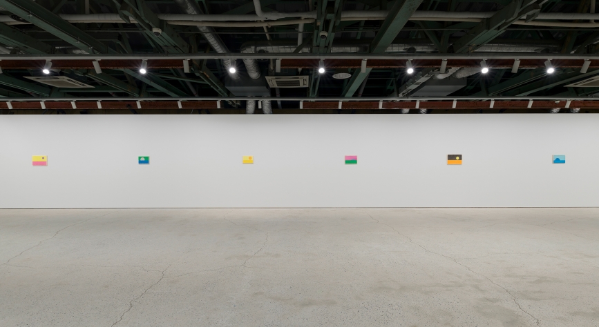 감각적으로 시간을 기록하는 작가 특유의 태도는 부산 전시에서도 찾아볼 수 있다. 이곳에서 작가는 전시장의 전면 유리창을 회색 자외선 차단 필터로 감싸 절묘한 공간 개입을 이루어 낸다. 전시장의 빛 스펙트럼을 살짝 조율함으로써 마치 구름에 그늘이 진 듯 전시공간을 시원하게 느끼도록 하는 효과를 도출한다. 이러한 날씨에의 암시는 부산 공간에 전시되는 17개의 작은 〈mattituck〉 작품과 함께 볼 때 더욱 적절하게 느껴진다. 작가의 집이 위치한 뉴욕 롱아일랜드의 매티턱에서 본 노을을 묘사한 이 작품군은 지역의 이름을 그대로 차용한 수채화 작품들이다. 〈mattituck〉은 전체적으로 다채로운 색을 담고 있지만, 각각의 작품은 오로지 3개의 색으로만 이루어진다. 단 3개의 색으로만 구성해서, 론디노네는 해가 수평선 아래로 지는 순간을 포착하고 노을의 섬세함을 화폭에 담아낸다. 작품들의 색채 활용 범위를 보색으로 좁힘으로써, 작가는 누구나 알아볼 수 있지만 시각적으로도 충만한, 하루 중 가장 특별한 시간의 마법을 온전히 담은 작품을 창작해낸다. 〈mattituck〉 연작은 론디노네의 다른 연작인 〈cloud〉나 〈sun〉과도 결을 같이 하는데, 이 연작들의 공통점은 모두 작품이 완성된 날짜 및 연도를 제목으로 삼는다는 사실이다.