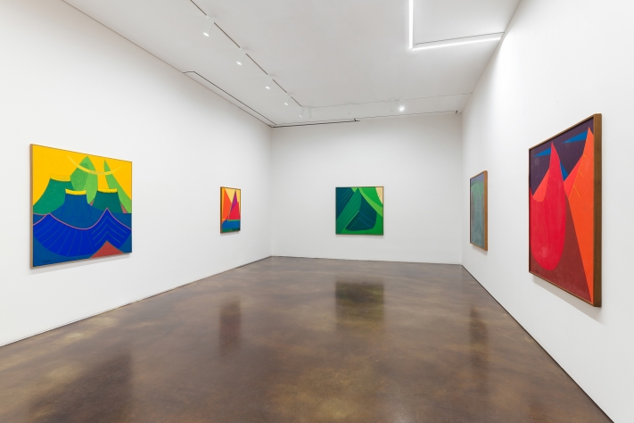 Colors of Yoo Youngkuk commemorates the 20th anniversary of the artist’s death by surveying his art historical legacy, highlighting works that display the essence of the artist’s distilled formal aesthetic with his signature motifs of mountains and nature that are portrayed with vibrant primary colors and meticulously calculated geometric compositions. Kukje Gallery’s K1 space centers on the artist’s representative and early works, highlighting Yoo’s unique artistic perspective. Facing the streets of Samcheong-dong through its corner windows, the first of the two galleries in K1 showcases works that provide a concise overview of Yoo’s experimentation with color and formal language. The second gallery space focuses on works from the 1950s and early to mid-1960s, in which the artist transformed natural elements into abstract shapes and emphasized simple forms and the texture of oil paint (matière) as he began to establish his unique aesthetic and style with his use of color and distinctive approach to abstract composition.
