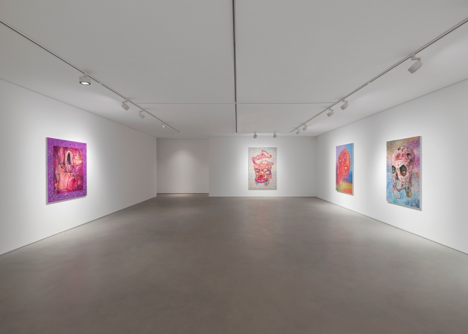 Gore Deco seeks to recover the perspective elided by the traditional hierarchies inherent in the medium of painting. By bringing forward subordinated subjects and adopting new visual strategies, the exhibition expands the diversity and fluidity of contemporary pictorial language. This is an attempt to at once explore the possibilities of painting through alienated physical experiences and the historically marginalized idioms of decoration, as well as to reconfigure the boundaries of the medium. While the artist’s incorporation of art history, history of visual culture, and bodily materials associated with women may seem to convey resistance laced with improvisational humor and sarcasm, this ultimately attests to the artist’s powerful gaze and sincerity towards painting.